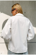 Découvrez le charme et l'élégance naturelle de cette chemise blanche vintage pour femme. Ses particularités ? Un col italien très tendance, ainsi qu'une coupe qui se situe à mi-chemin entre le classique et l'oversize. Elle se porte comme tel, ou bien rentrée dans votre plus beau jean taille haute pour obtenir un style chic.