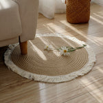 Ce tapis rond de style japonais en jute naturelle, fait à la main et en rotin avec glands, est parfait pour apporter une touche unique et élégante à votre salon ou salle de séjour. Le tissage finement ouvré ainsi que les couleurs subtiles feront toute la différence et donneront à votre intérieur une ambiance inoubliable. De plus, ce tapis peut être très utile pour décorer votre canapé, table basse ou table à thé. Élégant, durable et fabriqué à partir de matériaux de qualité supérieure, ce tapis rond vintage vous offrent le meilleur des deux mondes : esthétique et fonctionnalité. Transformez votre salon en un espace élégant et accueillant avec ce magnifique tapis fait à la main !