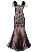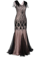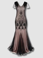 ROBE LONGUE GATSBY ROSE ET NOIR À PAILLETTES DES ANNÉES 20