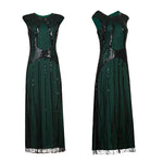 Robe Longue Gatsby Verte sans manches à franges et à paillettes noires