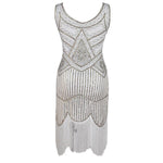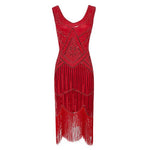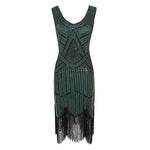 La robe de soirée à franges à sequins, col en V et sans manches, est une tenue magnifique pour les femmes qui souhaitent revêtir le charme des années 1920 lors d'une soirée festive. Les franges et les sequins ornent la robe, créant un mouvement et une brillance éblouissants. Le col en V flatteur met en valeur le décolleté avec élégance. Cette robe de soirée vous transportera dans l'atmosphère enivrante de cette décennie mémorable. Que ce soit pour une fête rétro, un bal ou un événement spécial, cette robe à franges et sequins vous permettra de briller et d'être au centre de l'attention avec une allure glamour et authentique des années 1920.