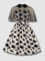 Robe d’Halloween Vintage à Imprimé en Araignée blanche