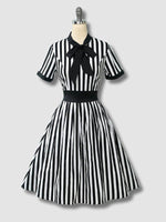 Avec cette robe mi-longue en coton, vous êtes sûre de vous démarquer ! Sa tenue rayée et plissée, le col en nœud papillon, la taille haute et les manches courtes lui donnent un style rétro très féminin. Les vêtements Vintage ne cessent de gagner en popularité et cette robe est parfaite pour ajouter une touche d'allure à votre garde-robe. Achetez-la maintenant pour compléter votre look vintage !