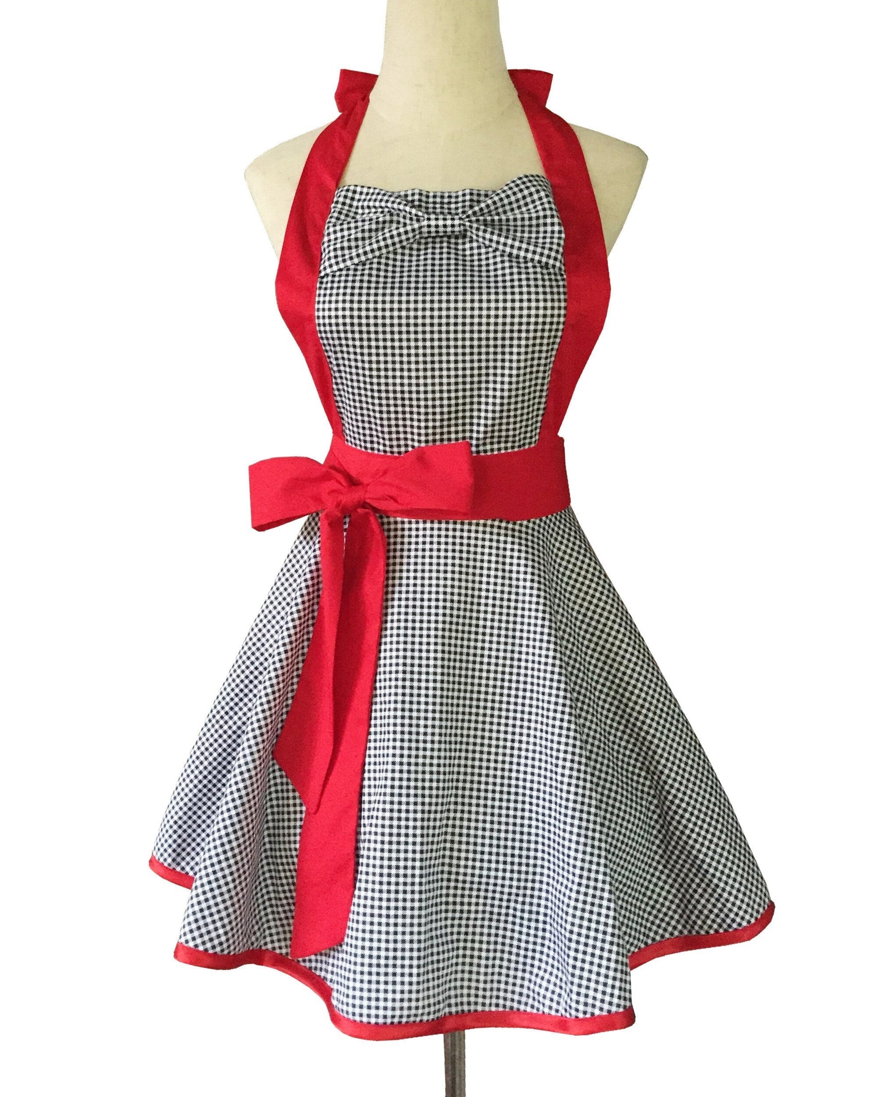 Ce tablier de cuisine vintage des années 50 à carreaux est un accessoire parfait pour ajouter une touche rétro à votre look. Ce tablier est fait avec des matières de grande qualité qui sont respirantes et très confortables. Il est doté d'un nœud intégré pour un ajustement parfait. Commandez le vôtre dès aujourd'hui ! Il est disponible en couleur rouge ou noir.