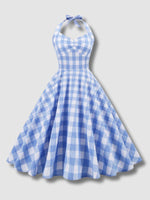Robe Rétro Dos Nu à Carreaux pour Femme