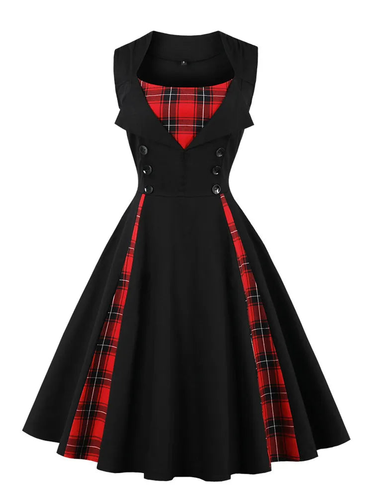 Robe Tunique Sans Manches Vintage - Élégance rétro et contrastes saisissants