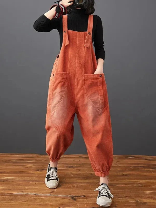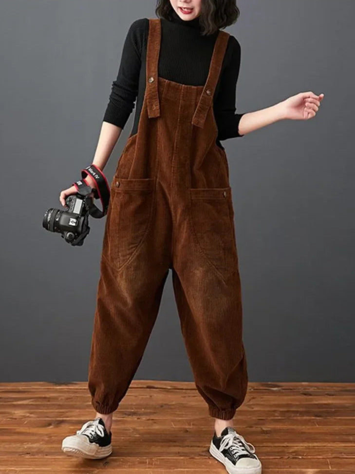 Conçue pour offrir une liberté de mouvement exceptionnelle, cette salopette vintage est parfaite pour les journées actives. Que vous vous promeniez en ville, voyagiez ou vous détendiez à la maison, cette pièce polyvalente s'adapte à toutes les situations. Son tissu en velours côtelé assure une sensation agréable tout au long de la journée.