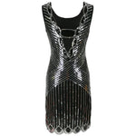 Robe Gatsby Courte Noire sans manches et à paillettes argentées
