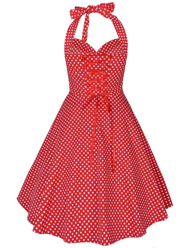 Ajoutez une touche de charme vintage à votre garde-robe avec notre robe halter rouge à pois années 50
